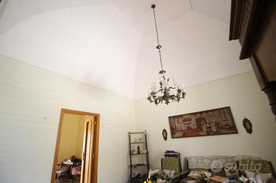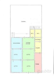 Casa indipendente in zona semicentrale, composta da ingresso, salotto, cucina, tre camere da letto, disimpegno, cucinino, bagno con antibagno, giardino posteriore, cantina e garage.