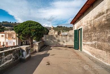 Attraverso un elegante androne si accede alla scenografica scala in marmo, che conduce al piano superiore, dove gli ambienti spaziosi e luminosi si susseguono armoniosamente: uno studio con camino, un raffinato salone, una zona living, una cucina, una camera da letto e un bagno. Salendo ancora, al secondo piano, si trovano due vani dal grande potenziale, ancora da ristrutturare, che conservano intatti i dettagli originali dellepoca. Da qui si accede a un magnifico terrazzo panoramico, un vero punto di forza dellimmobile, da cui si può ammirare una vista mozzafiato sul mare Ionio, Taormina, la Calabria e limponente Etna.