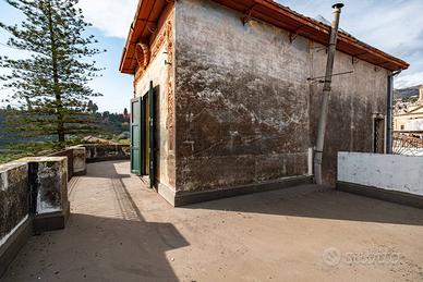 Attraverso un elegante androne si accede alla **scenografica scala in marmo**, che conduce al piano superiore, dove gli ambienti spaziosi e luminosi si susseguono armoniosamente: uno studio con camino, un raffinato salone, una zona living, una cucina, una camera da letto e un bagno. Salendo ancora, al secondo piano, si trovano due vani dal grande potenziale, ancora da ristrutturare, che conservano intatti i dettagli originali dellepoca. Da qui si accede a un **magnifico terrazzo panoramico**, un vero punto di forza dellimmobile, da cui si può ammirare una vista **mozzafiato** sul **mare Ionio, Taormina, la Calabria e limponente Etna**.