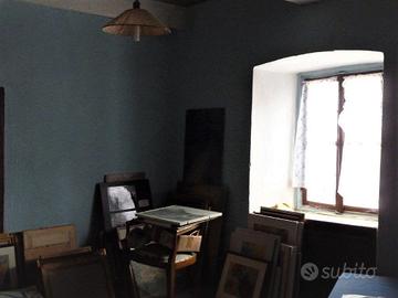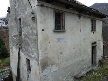 Al Merro proponiamo intera casa dei primi '800 con cortile e giardino. Su tre livelli comprende antica cantina a volte, tre vani rustici di deposito, atrio con scala in pietra al primo piano con sala, cucina con camino, dispensa; al secondo piano atrio e tre camere con servizio esterno, ed altra cameretta con accesso dal balcone. Soprastante sottotetto in parte sfruttabile, coperto in tegole. In posizione sopraelevata gode di esposizione a sud-est. Opere di ripristino abitativo non gravose. Parcheggio comunale a circa 50 mt..