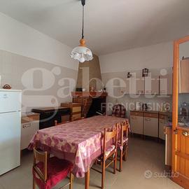 L'Abitazione fa fronte su due strade, ha una superficie coperta di Mq 80,00 distribuiti interamente al Piano Terra, e si compone di un ampio vano con copertura a volta 'a stella', avente un'altezza tale da consentire la futura realizzazione di un soppalco, camera da letto, disimpegno, bagno, spazioso soggiorno/sala da pranzo con angolo cottura, camino ed accesso diretto sullo spazio esterno retrostante, dove troviamo un comodo vano pluriuso ed il vano caldaia.