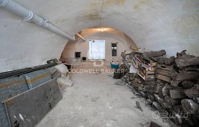 Al piano terra ci accoglie un a grande stanza voltata con annesso piccolo bagno di servizio, seguita da una zona tinello con camino e adiacente cucina, con affaccio diretto sull'area scoperta;