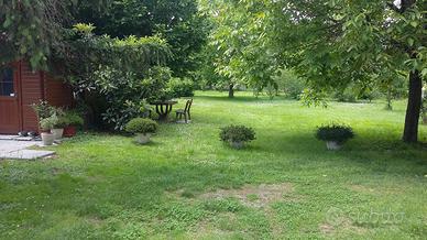 Nel giardino sono presenti due garages,la centrale termica, due tettoie per il ricovero di mezzi ed una casetta in legno utilizzabile come stanza hobby o per il ricovero degli attrezzi,