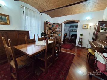 Piano terra: dotato di doppio ingresso, è composto da una zona living di circa 40 mq con zona pranzo e salotto con stufa Stube tirolese, parquet in legno massello afrormosia e soffitto con voltini in mattone.Completano il piano terra una cucina abitabile di circa 20 mq con lavanderia annessa ed un bagno con pavimenti in cotto fatto a mano.Gli alti soffitti con voltini in mattoni a vista fatti a mano.La pavimentazione nella zona living è in parquet di legno massello mentre negli altri ambienti è in cotto fatto a mano.