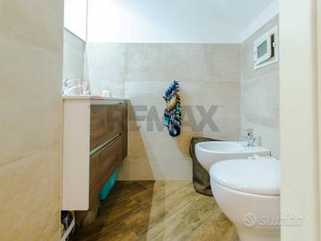 Rifiniture: L'immobile ristrutturato di recente, dispone di impianto idrico, elettrico a norma, entrambi con certificazioni, climatizzazione in tutti i vani, riscaldamento autonomo, predisposizione impianto d'allarme, cancellate di sicurezza, zanzariere su tutte le esposizioni e infissi in vetrocamera a taglio termico.
