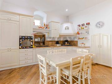 Risulta rifinita con materiali di pregio tra cui pavimentazione in gress porcellanato effetto parquet, porte interne in legno massello, illuminazione con faretti, e soffitti rifiniti in legno.