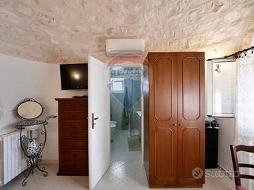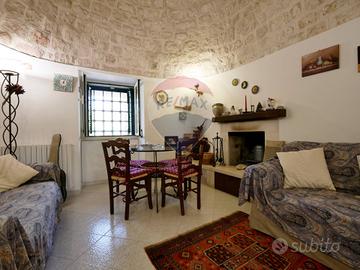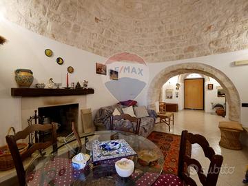 La villa si sviluppa tutta su un unico livello per una superficie di circa 179 mq, con ambienti ampi, luminosi e ben distribuiti: ampio ingresso, accogliente salotto con camino, cucina abitabile con tinello, due camere da letto (una con bagno privato) e un secondo bagno con zona lavanderia. La costruzione è caratterizzata da architettura mista, con una parte in trullo in pietra a secco e una parte moderna con lastrico solare: un connubio perfetto tra charme rurale e funzionalità contemporanea.
