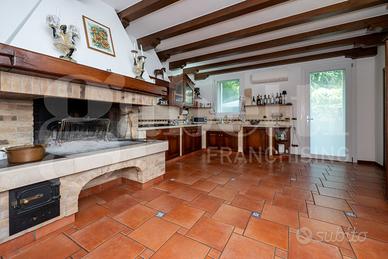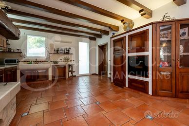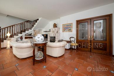 Al piano terra si trova uno spazioso e luminoso soggiorno dotato di stufa centrale, una cucina open space con sala da pranzo provvista di camino molto grande ottimo per gli appassionati di cucina. Sempre al piano terra è presente la zona lavanderia, con bagno di servizio.