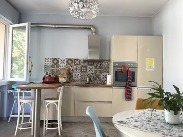 Gli spazi interni si distinguono per la loro ampiezza e luminosità: la zona giorno accoglie un ampio salotto e una cucina in stile americano con cucinino separato, ideale per chi ama vivere la casa in modo conviviale.
