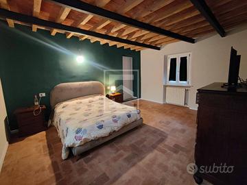 Al piano terra si trovano il garage, una cucina abitabile, un soggiorno con camino, un bagno e una cantina. Il primo piano ospita due camere da letto, un guardaroba, un secondo soggiorno con camino, due bagni e un ripostiglio. Gli ambienti, luminosi e ben distribuiti, conservano il fascino delle case di campagna pur offrendo il comfort di una ristrutturazione moderna.