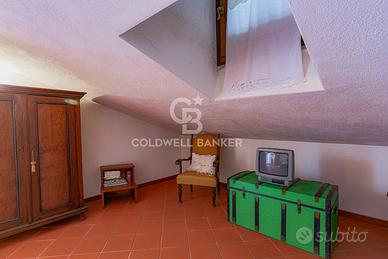 Al piano terra si viene accolti da un ampio salone con camino, cuore caldo e conviviale della casa, perfetto per trascorrere serate in famiglia o con gli amici. La sala da pranzo, anchessa dotata di camino, conserva unatmosfera intima e raffinata, mentre la cucina semi abitabile, pratica e luminosa, si affaccia su un caratteristico scorcio del borgo. A completare il piano, un bagno di servizio e una camera da letto che può essere utilizzata anche come studio o stanza per gli ospiti, offrendo grande versatilità.