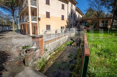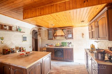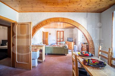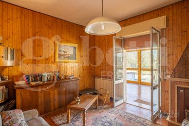 * Piano Primo: accessibile sempre dal vano scale centrale, ospita il secondo appartamento sviluppato su un unico livello. È composto da un'ampia zona giorno con cucina, zona pranzo e soggiorno con camino, tre camere da letto e un bagno. Sul lato nord si trova una luminosa veranda con ascensore/montacarichi di circa, che rende l'alloggio adatto anche a persone con mobilità ridotta. L'accesso alla veranda avviene tramite pochi gradini dal vano scala.