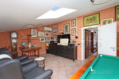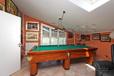 - Piano primo: 2 camere matrimoniali, bagno, ripostiglio, mansarda con biliardo.
