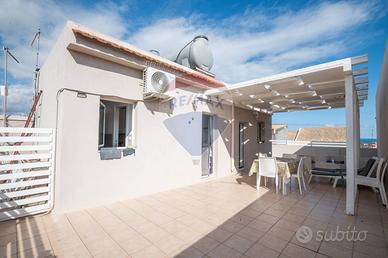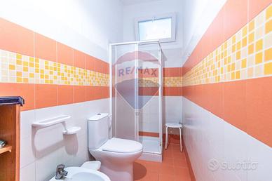 Dal civico 90 si sale invece al primo piano, dove si trovano due appartamenti autonomi: il primo con un moderno open space cucina-soggiorno, due camere, bagno e lavanderia; il secondo composto dalla zona notte con due ulteriori camere e la zona giorno con cucina, bagno con doccia, ripostiglio e ampia terrazza con gazebo e area relax al secondo piano, da cui si accede tramite una scala interna. Una configurazione che offre infinite possibilità: ospitare più nuclei familiari, creare una rendita immediata con affitti turistici o lunghe permanenze, oppure mantenere un appartamento per sé e destinare gli altri a reddito. La casa, inoltre, gode di una vista mare da poter godere tranquillamente dal terrazzo di pertinenza.