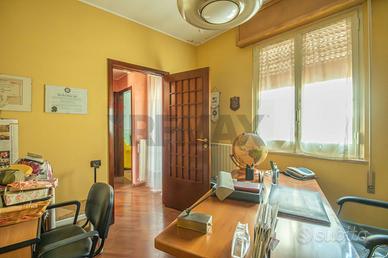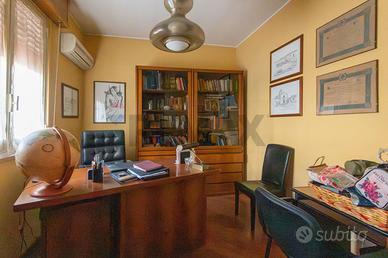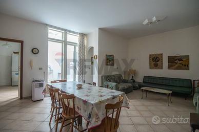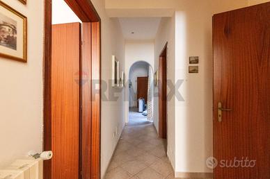 Al primo piano il secondo appartamento è di 155 mq , si accede in un luminosissimo ed elegante soggiorno pavimentato a parquet , troviamo una stanza studio , un bagno ,una cucina e soggiorno con una verandina e lavanderia , una camera matrimoniale con bagno ed una singola con bagnetto in camera.