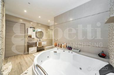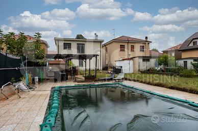 Situato nelle immediate vicinanze della stazione, in zona residenziale di sole villette, proponiamo soluzione contemporanea dal design elegante. L'immobile si distingue per la sua architettura moderna con linee pulite e ampie vetrate che permettono alla luce naturale di fluire negli interni, dotato di finiture di alta qualità, riscaldamento a pavimento, gestibile per singola zona, aria condizionata canalizzata ed impianti all'avanguardia. Gli spazi sono sapientemente suddivisi per due nuclei familiari, al piano terra oltre all'ampio giardino di ca. 600mq. ospita anche una piscina e posti auto, l'interno è composto da quattro locali con zona living open space con camino, cucina completamente attrezzata, tre camere da letto di cui la matrimoniale con sala da bagno ad accesso diretto dalla stessa, altro servizio e lavanderia. Al primo piano ripetiamo lo stesso schema di casa cambiando solo le finiture. L'immobile si sviluppa su 4 livelli seminterrato con locale tecnico e cantine, piano terra quattro locali con tripli servizi, piano primo 150mq., quattro locali tripli servizi, secondo piano di150mq con terrazzo a vasca per alloggiare i pannelli fotovoltaici