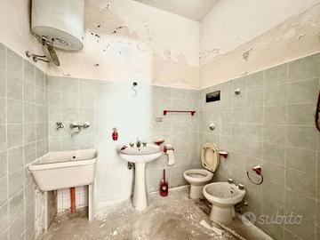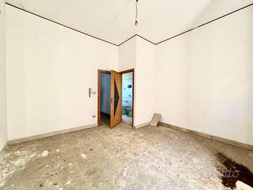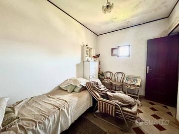 L'immobile dispone di cinque ingressi. Al piano terra, accediamo a due camere collegate da una porta.