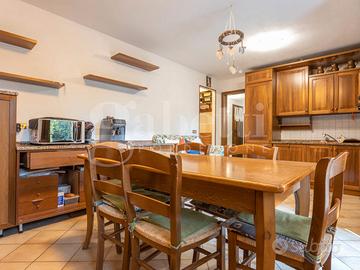 La porzione degli anni '60 si compone di uno spazioso ingresso, un ampio ripostiglio, il bagno ed una cantina al piano terra, due ariose camere ed un ulteriore ripostiglio al primo piano.