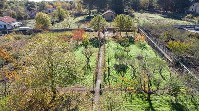 La proprietà comprende anche un terreno di 1.350 mq, situato allingresso, interamente piantumato con peschi, meli, peri e viti, ideale per gli amanti della campagna e dellautoproduzione.