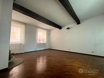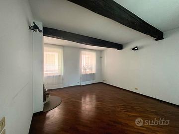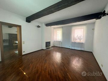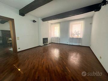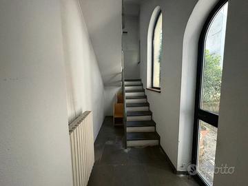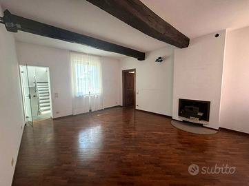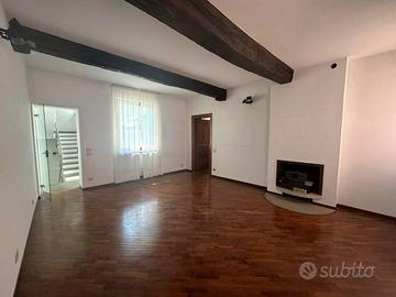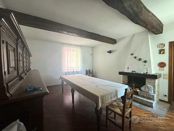 -Salendo al primo piano, tramite una comoda scala inondata di luce naturale grazie alle ampie finestre, si accede a un salone di rappresentanza dal carattere unico: una splendida porta vetrata introduce in un ambiente con camino, travi a vista e tre punti luce che garantiscono luminosità e calore. Sullo stesso piano si trovano una sala da pranzo anch'essa con camino, una cucina abitabile, un bagno e una comoda balconata con affaccio interno.