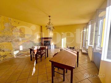 Il secondo fabbricato, anch'esso ricco di potenzialità, si apre su un luminoso soggiorno, cucina, due ripostigli, cantina e locale di sgombero (ex stalla) al piano terra; il piano primo, raggiungibile tramite scala interna, accoglie un disimpegno, due camere da letto, bagno, balcone e ulteriore locale di sgombero (ex fienile).