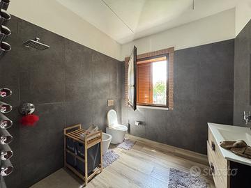 Il primo piano, invece, è ancora allo stato grezzo e rappresenta una straordinaria opportunità per chi desidera personalizzare la propria casa. Il progetto prevede la realizzazione di tre camere da letto, di cui una con cabina armadio e bagno privato, oltre a un ulteriore bagno a servizio del piano. Questa caratteristica offre al futuro proprietario la libertà di completare gli spazi secondo il proprio stile e le proprie necessità.