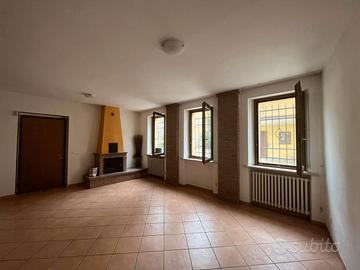 Nel centro del paese, all'interno di una corte tranquilla, porzione di casale di fine 800 finemente ristrutturato ed ideale per una bella famiglia. All'ingresso ci accoglie una bella e grande sala con camino ed una spaziosa cucina abitabile, anch'essa con camino. Al piano superiore si accede mediante una scalinata in marmo ed accediamo alla zona notte mediante un disimpegno e troviamo il bagno principale con una grande camera da letto matrimoniale con accesso nell'altra stanza (è possibile, con una divisione interna, avere due camere indipendenti). Sopra ancora troviamo altre due stanze sempre comunicanti e bagno a loro disposizione. La casa è inoltre dotata di un grande locale ad uso cantina o tavernetta con mattoni a vista dove troviamo la caldaia; dirimpetto l'immobile, abbiamo vari rustici con sovrastante granaio, garage e piccolo cortiletto interno. Soluzione molto interessante al prezzo di un bilocale!
