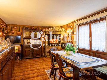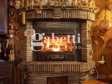 La prima unità, sviluppata su tre livelli, accoglie al piano terra una zona giorno accogliente con angolo cottura, sala da pranzo e un suggestivo caminetto a legna.