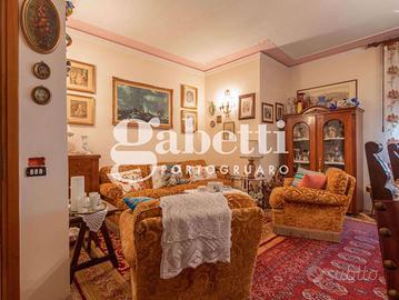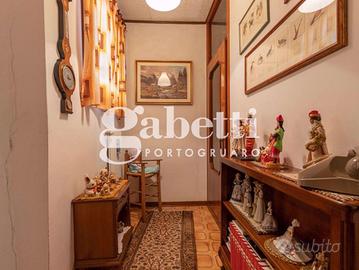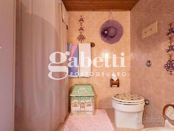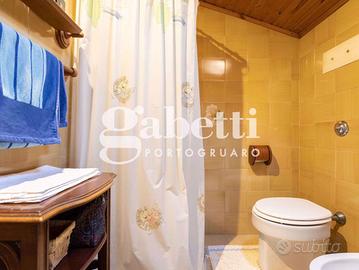 La seconda unità, collegata internamente, si estende su un unico livello e offre spazi generosi e luminosi: un ampio soggiorno, una cucina abitabile, un ripostiglio e un corridoio che conduce alla zona notte composta da tre camere da letto, di cui una matrimoniale con terrazzo privato affacciato direttamente sul fiume - un vero e proprio angolo di quiete.