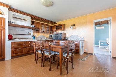 Sviluppata su due livelli terra cielo per complessivi 230mq più un ulteriore piano sottotetto al grezzo di ulteriori 105mq, al piano terra si compone di un moderno e luminoso soggiorno, una bellissima e pregiata cucina su misura, una lavanderia e dalla taverna che rappresenta il vero fulcro di questa abitazione, ambiente unico per spazi e finiture adornata da un camino in muratura e da stupende travi a vista, in un connubio perfetto tra tradizione rurale e modernità.