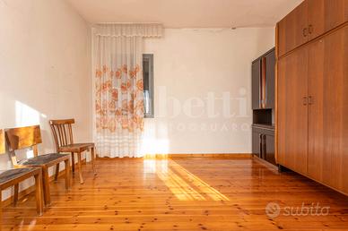 Disposta su due livelli, al piano terra troviamo una camera da letto, la zona giorno composta da un vano pranzo/soggiorno, cucina separata con sbratta come da usanza dell'epoca costruttiva, un bagno, più ulteriori vani collegati, che in un'ottica di riqualifica offrono ampie opportunità di adattamento in base delle proprie esigenze.