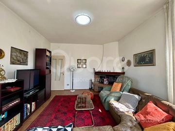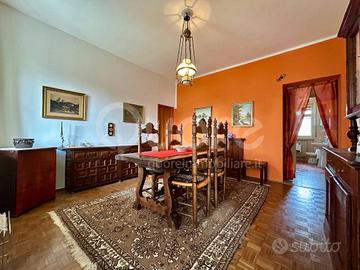 Il primo piano offre spazi ampi e versatili, attualmente organizzati con due camere da letto, un secondo soggiorno, una cucina e un bagno con vasca.