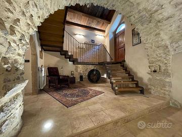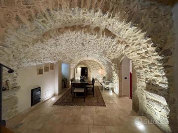 Al piano terra veniamo accolti da un'ampia sala da pranzo con volta in pietra medievale, soggiorno con camino in pietra , cucina abitabile con tetto in legno a vista, camera matrimoniale e bagno, il tutto rifinito con pavimento in pietra.