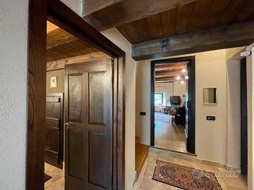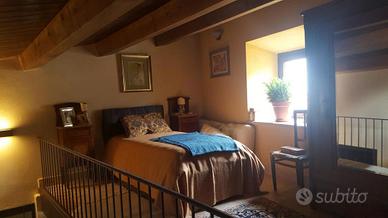 Una comoda scala in legno e ferro ci conduce al primo piano dove troviamo un'ampia camera matrimoniale con tetto a legno a vista rifinita con parquet, e bagno con doccia.