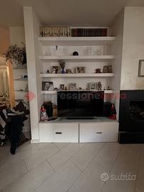 L'ingresso si apre sull'ampia zona giorno con caminetto incassato, zona pranzo, cucinotto, un bagno finestrato e uno studio. La scala interna scende nell'ampia cantina di oltre 20mq e sale nella zona notte che si compone di disimpegno con piccolo salottino, botola di accesso alla soffitta, una camera singola, due camere matrimoniali, una delle quali con cabina armadio e ampio bagno con vasca e doccia.