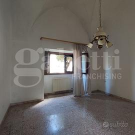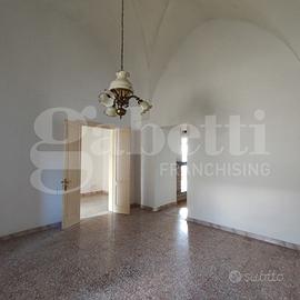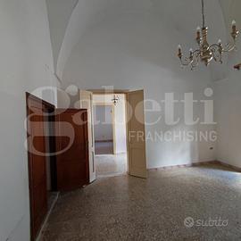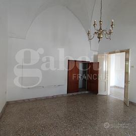 L'immobile ha una superficie coperta pari a mq 220,00 distribuiti su tre livelli, e si compone di un piccolo vano di ingresso da Corso Dante con volta 'a stella', due ampi vani sempre con volta 'a stella', uno dei quali conserva l'originale focolare delle dimore salentine, dotato inoltre di un bagnetto di servizio ricavato nello spessore della muratura perimetrale, sala da pranzo con camino ed uscita sul giardino, cucinotto e bagno. Un comodo vano scala interno conduce al piano primo, dove troviamo due vani ed un bagno. Il giardino retrostante, di quasi 100,00 mq, è l'ideale per vivere piacevoli momenti all'aperto durante la bella stagione. Completa la proposta immobiliare un'ampia cantina posta al piano interrato dello stabile, con accesso dall'interno dell'abitazione. L'immobile è dotato degli allacci ai servizi pubblici necessari e necessita solo di manutenzione ordinaria.