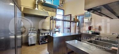 In ottima zona di passaggio, proponiamo in vendita locale commerciale al momento ad uso negozio (ex pizzeria). La soluzione è composta da ingresso in comoda sala principale, retrostante a vista abbiamo zona lavorazione pizze e forno a gas. Le due salette open-space hanno entrambe volte a stella. Dietro troviamo cucina completa, spogliatoio, bagno di servizio, ripostiglio e veranda con vano scala per lastricato solare. Adiacente l'ingresso si apre piccola saletta con secondo bagno e ripostiglio. La soluzione viene venduta con parziale attrezzatura per creare pizzeria, ma con cambio destinazione uso è possibile trasformarla in civile abitazione. Tra le foto è presente una potenziale ristrutturazione a civile abitazione.