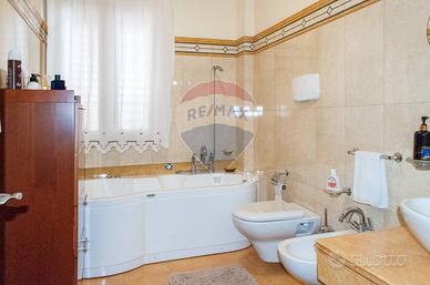 Il primo piano, di 138 mq (7,5 vani), è un appartamento rifinito con cura: tre camere, due bagni, cucina abitabile, soggiorno, studio, ripostiglio e grandi spazi esterni (verande e balconi).