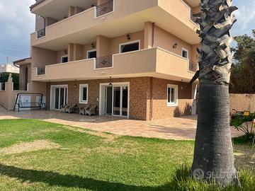 Corte esterna costituita da prato all'inglese , superficie piastrellata con annesso gazebo in legno con forno a legna ed una stanza adibita a cucina . A seguire sempre nella corte esterna si trova una seconda stanza al momento adibita a spogliatoio di servizio ad una doccia esterna in muratura ( acqua calda).