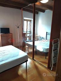 Si accede all' immobile da un Piano Rialzato ed è cosi composto; soggiorno con camino e angolo cottura, al 1° Piano da una camera da letto, una cameretta e un servizio con doccia.
