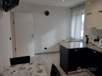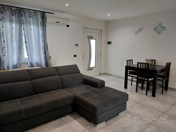 Tramite scala esterna si accede al primo piano, composto da un luminoso soggiorno con accesso diretto al terrazzo, ampia cucina, disimpegno, due camere da letto di cui una con bagno privato e un ulteriore bagno.