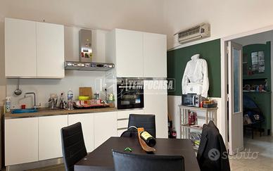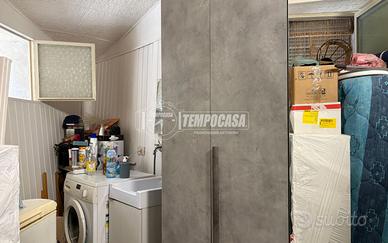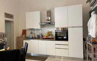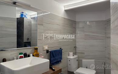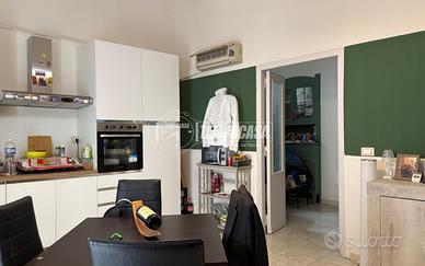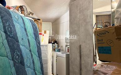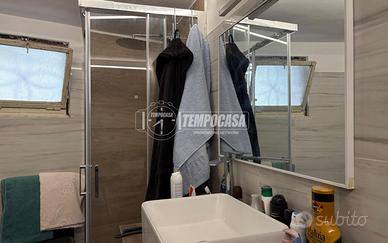 All'ingresso si trova un piccolo terrazzo che ci accompagna a un luminoso salone con cucina a vista e un bagno di servizio finestrato adiacente, comodo e moderno.