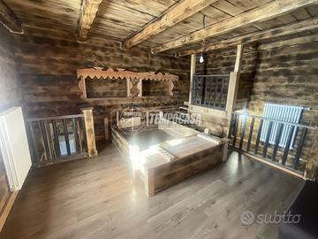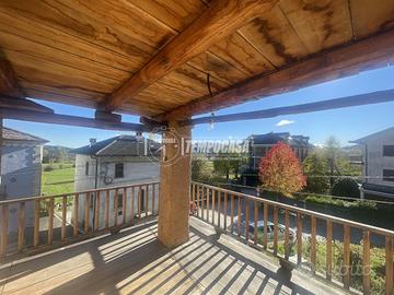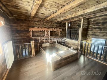 Al piano superiore la luce si posa sulle travi e sul legno, abbracciando la camera matrimoniale e una cabina armadio pensata per ordine e bellezza. Da qui, un secondo terrazzo regala uno sguardo pieno sui tetti del borgo e sui pendii verdi che cambiano colore con le stagioni.