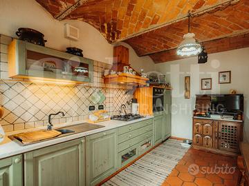 Al piano terreno, la zona giorno si apre luminosa e fluida: la cucina con volte a botte, la sala da pranzo e il salotto si susseguono senza soluzione di continuità, favorendo convivialità e armonia. Il bagno, rifinito in marmo, e la lavanderia, discreta e funzionale, completano questo piano concepito per il quotidiano vivere con naturalezza.