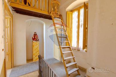 Al primo piano accediamo tramite una scala in pietra dove troviamo una ampia e luminosa camera che si affaccia sulla piazza con l'accesso al suo balconcino privato. Il pavimento conserva le sue affascinanti cementine originali, troviamo inoltre sul ballatoio una nicchia adibita a ripostiglio, un bagno finestrato e ancora una scala che ci porta al secondo piano adibito a mansarda e a zona relax.