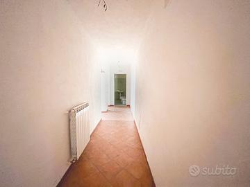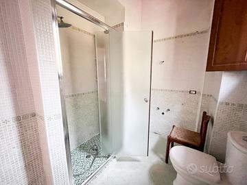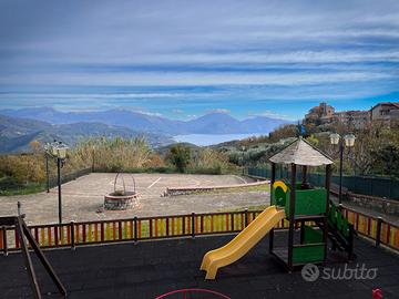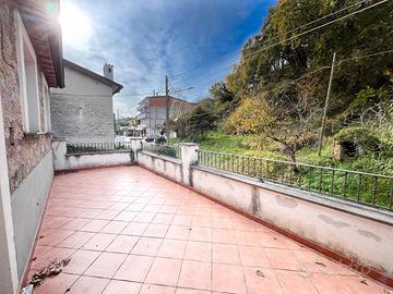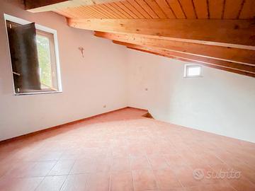 L'immobile è disposto su tre livelli: al piano seminterrato troviamo una taverna con camino, mentre al piano terra sono presenti due ripostigli, corridoio, ampio soggiorno con predisposizione per cucina e balcone, 2 camere da letto matrimoniali, di cui una con balcone, 2 bagni e portico con piccolo giardino pavimentato. Al primo piano si trovano 2 vani soffitta, corridoio, bagno, una camera con ulteriore camera soppalcata e 2 terrazzi.