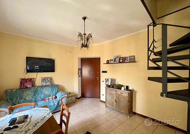 Una scala a chiocciola ci conduce al primo piano dove troviamo un disimpegno, camera matrimoniale con balconcino e botola per accedere al terrazzo di 20 mq ca. e una cameretta.