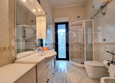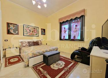 La zona notte è composta da quattro camere matrimoniali, ognuna dotata di climatizzatore per garantire il massimo comfort in ogni stagione. I due bagni completi di doccia offrono praticità e funzionalità per tutta la famiglia. Gli infissi, in pvc bianco, con doppio vetro e taglio termico, garantiscono un'ottima coibentazione e un elevato isolamento acustico.