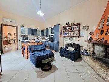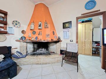 L'ingresso principale conduce a un ampio soggiorno di circa 40 mq, luminoso e accogliente, ideale per momenti di relax e convivialità. La cucina/sala da pranzo, dotata di camino e climatizzatore, è il cuore pulsante della casa, perfetta per preparare deliziose pietanze e godersi pasti in compagnia. Adiacente alla cucina si trova una comoda dispensa di circa 7 mq, ideale per riporre provviste e utensili.