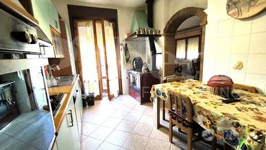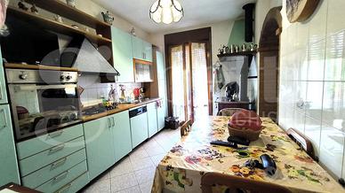 Il primo appartamento, al piano terra, dispone di una veranda con cucinotto, ampio soggiorno, cucina abitabile con stufa a legna, 3 camere da letto, 2 bagni e una cantina al piano di sotto.